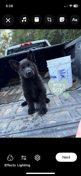 Big Black male is ready next Friday. Small black m & black sable F ready in a month.