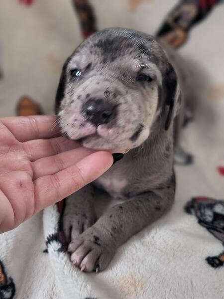 message pnkcm3186 about this ad AKC registered vetted and dewormed great Dane pups available will be ready to go to forever family November 6th males and females available colors are blue merle and blacks . Pups will be well socialized and started on basic training along with potty training for more information please contact |