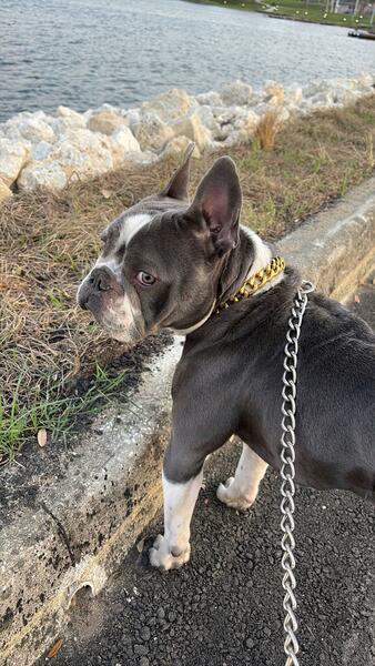 message frenchiewayz about this ad Male, 2 years old, no papers ( owner of mom and dad passed away shots up to date, listens, house trained, friendly and playful. mom is a black frenchie, dad is a grey micro bully. please contact (470) 971-1900 for serious inquiries only |