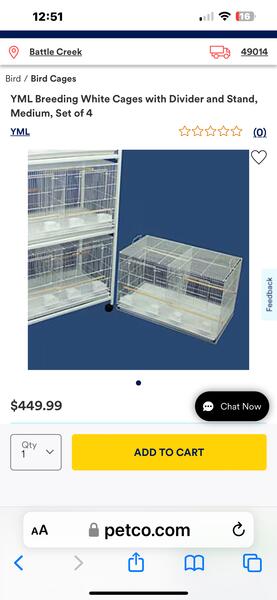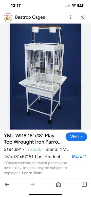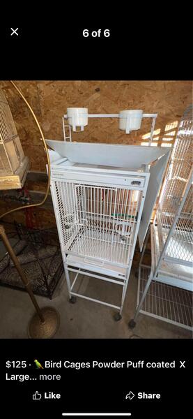 message sturgisbride about this ad Single cages or stacking cages on unit with wheels Canarys Finch, parakeetscages, parakeets small parrots new, and like new antique canary cage on stand pick up in Hickory corners Michigan and Bellevue Michigan Cages are priced separately just let me know what youre interested in starting at $50 and up call 269-671-5390 |