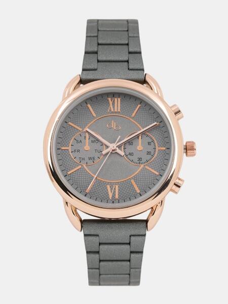 message rohinee about this ad Display: Analogue Movement: Mechanical Power source: Battery Dial style: Solid round stainless steel dial Features: Reset Time Strap style: Grey bracelet style, stainless steel strap with a foldover closure Water resistance: Water Resistant Dial width: 30 mm Strap width: 18 mm Sport this watch from DressBerry and make a style statement. Flaunt this timeless grey piece with formal attire to nail a polished look when you head out to work. httpsmyntr.it/M8rmYfV |