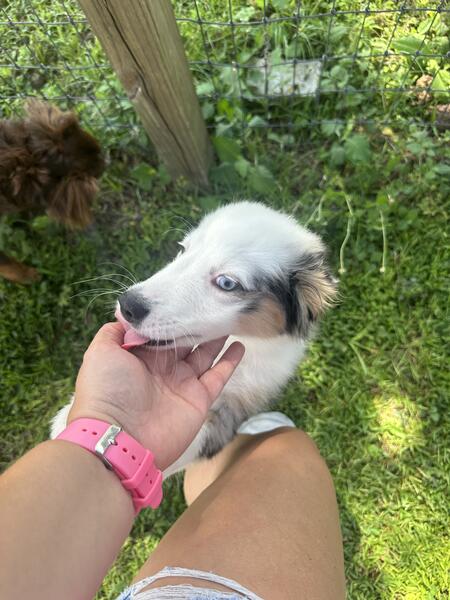 message momof3boys1girl09 about this ad Tramp is 19 weeks old and still available! He has one brown eye and one blue eye and is a Merle color. He is a bigger sized toy, more of a mini size. He will come: *Microchipped *All 4 puppy boosters & rabies vaccine *Started on Heart Guard Plus *Dewormed *Registered with ASDR *Genetic tested *Tail docked *Health Certificate from vet *Loved on and socialized *Around other dogs |