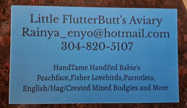 message katz about this ad Handfed handtame Babiy lovebirds and English and Crested budgie keets we also have retired pairs of adults up for adoption prices vary depending upon the bird parrotlet pair 200.00. Lovebirds 200.00 if you want dna tested otherwise they are 150.00 each without dna. English budgie keets and Crested parakeets are 75.00 each i will not ship birds nor will I take cash apps so dont waste my time text or call I do not always reply to emails we are located in Harper's ferry.wv near Charlestown wv |