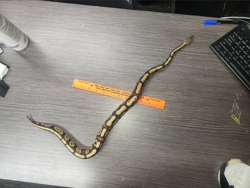 Docile, easy to manage, male ball python. Approximately 2-2 1/2 years old. 27" long.