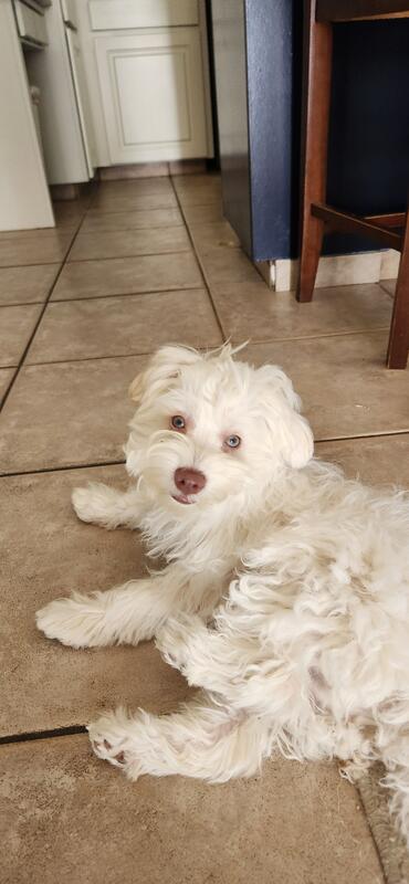 message kenpa about this ad We have an ALBINEO Multipoo. Two Blue eyes, pink around his eyes and white coat. He does have a small tan color in 1 ear. 20 week as of posting and all his shots including rabies. 408-722-5545 (price is negotiable) make us an offer So if you ever wanted that blue eyed, blond hair guy here he is. |