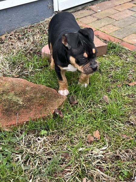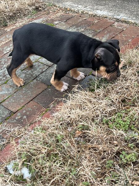 message bcs757kennels about this ad Black tri pocket American Bully female utd on shots. For pics of mom and dad or more pics and videos of the puppy call or text 757-994-4588 |