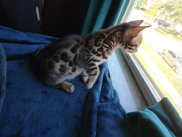 message dave1977 about this ad I got a hold of this really cute Bengal kitten with a birth defect (pectus excavatum She is about 2 months old, litter trained and very playful. She doesn't seem to have any problems except her misshapen rib cage. I didn't take her to the vet so I do not know the extent of the defect and she may need a surgery in the near future. So while you will be getting a beautiful Bengal kitten for free, you should count on some medical bills for the surgery after which she will have a normal and healthy life forever. Once again, she is free and I will not take any money from you. |
