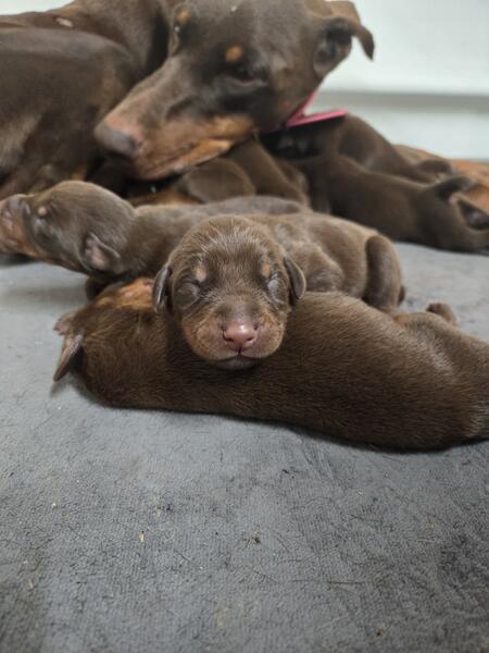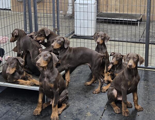message tnewsome41 about this ad I have a 2 female and 3 male pups that we are still trying to find their forever home. If you are interested, you can contact me through here or you can text me at 260 five three zero 7474. Price drop due to their age. They are 11 months old, they will come with akc paperwork but no breeding rights. They are American Red Dobermans. Pups no longer have the collars at this time, due to chewing them They have a big back yard they run around in and have access to go in and out of the kennel for shelter, they are still very playful and rowdy due to being pups, but when they are seperated from each other, they are pretty mellow. Please message me for any questions. I do not currently have anymore updated pictures, but can get them per request. |