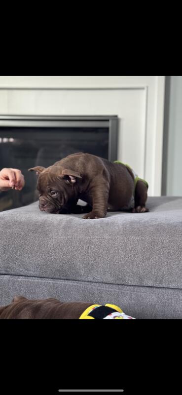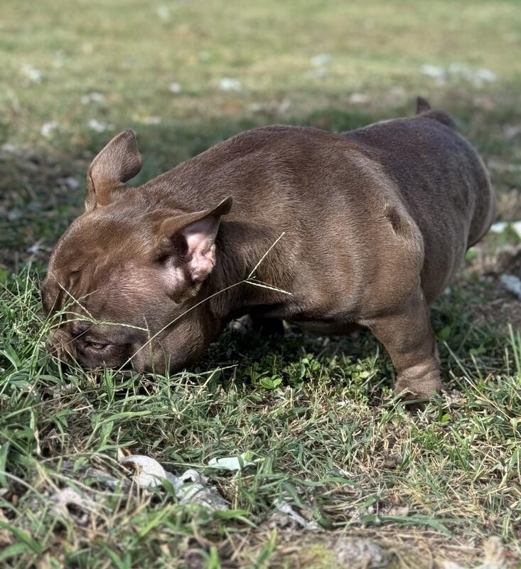 message cbrndnhwz about this ad Availabull female will be in heat soon. Crunch/Fort Knox bloods X Beef/OJ bloods. If youre looking to create better bulls yet still have that exotic wow factor look w better breathing & function than shes what you need! If youre looking to have a showstopper! If youre looking for a bull that can stand on them tables w the best exotics or a bull you can put in the show ring or just a head turning companion than Shes for you. 100% fully functional micro bully adult female, turned 2yrs old Oct 12 25. UTD on shots and deworming & heart guard. Never been bred. Will be in heat soon, she just started to swell up. Well behaved, gets along with other dogs, cats etc. also crate & hs trained. She is micro, compact, beautiful chocolate coat, dome, perfect portion of muscle & bone ratio, a1 structure, full tail. A female version of her grand sire Crunch. Great pedigree. photos of her & her parents above. Please everything you need to know is in the ad so dont ask me about things already listed serious people only. No point to 2nd guess on a pup if youre looking to breed asap. Price $3,500 w papers in hand. please no more time wasters contact me only when ready to do business 608-770-1499 text me for faster response. message cbrndnhwz about this ad |