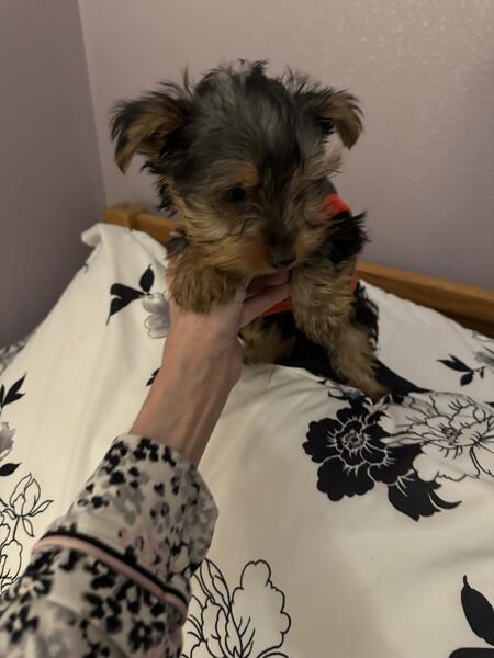 message pammy2323 about this ad Registered One male Yorkshire puppy-tails and dew claws done at my vets -first shot and wormed at vet too - they are registered with his papers -702-280-3075- they should be between 2 and 4 lbs - I kept one of her pups before and shes 3 lbs -ready - |