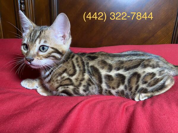 message bvnhmshp4 about this ad We have purebred hypoallergenic Bengal kittens available for taking home today or reservation. Both parents are TICA, and have full five lines Generations Pedigree. Our kittens have very good personalities because we are giving them lots of our attention and training. Theyre already vet checked and vaccinated up to date. Welcome to do FaceTime meeting and come in person. Rehoming fee starts from 900-1800 depends on the markings bloodline and age/time of reservation or taking home. Please contact for details and more information at 442-322-7844.Thank you! |