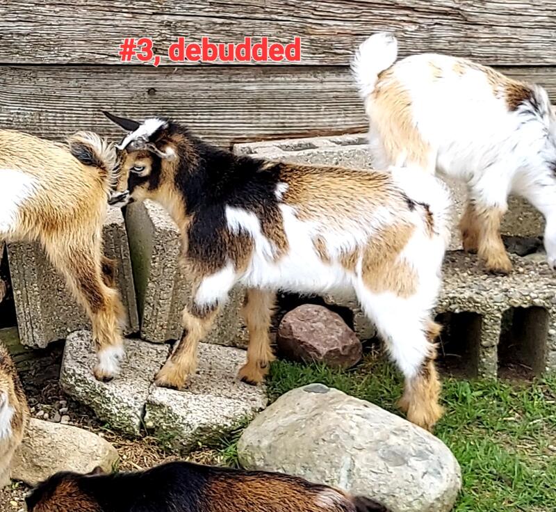 message jazzygirl66 about this ad Sire is light buckskin/blue eyed/moonspotted all kids are registerable, some have blue eyes (some may be homozygous dominant for blue eyes some do have moonspotts bonusmy goats are trained to graze I only have 5 left April born, Nigerian Dwarf Bucks registerable as bucks or can be wethered for pet or meat2 have blue eyes (possibly homozygous dominant for blue eyes some have obvious moonspotts, others could have hidden moonspotts. Some are debudded, I rushed doing them so several have bad scurs, one I would still consider horned last picture is most recent #1-Triplets born 4/8, dam is black/white/blue eyed/polled, their grandma is my highest producer, he will not be showable due to a naughty goose damaging their ears 1 debudded left #2-Single, buck, debudded, born 4/10, nicely built, dam is red buckskin, moonspotted, roaning, one of my stocky does and has nice lower udder attachments. #3-Twins born 4/15, debudded, dam is Chamoisee/moonspotted, roaning, one of my stocky does, good udder attachments #4-Triplets, debudded, born 4/16, dam is blue eyed/polled/chocolate buckskin, as a first time mom is doing a great job, has a nice looking udder #5-twins debudded, born 4/23, dam is buckskin with extensive white/ moonspotted/blue eyed and has a nice udder Buckling is super dark buckskin, has blue eyes and moonspotts. we have a healthy herddecent udder and milk lines Bucklings are 350.00 with registration application, or 250.00 withoutwethers are 150.00, that includes me banding them before they leave (if you are wanting a wether debudding (if they aren't polled their first CDT, hoof trimming, worming, a treatment of Cylence (external parasites a baggie of the grain I feed, and tattoos for registered/or ear tag if going as non registered buyers can opt out any or all of those except the tattoos/ear tagif I don't band the buck before he leaves, he will be buck priceand opting out of anything won't lower the price Sorry, due to scams in the past no calling or texting until final arrangements are being made message jazzygirl66 about this ad |