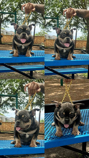 message topmasterbloodline1 about this ad Female micro american bully thats clean all the way around from front to rear. Full tail clean feet bite & rear. Beautiful blue tri coat. Came out a litter of 9 & USBR registered, 5months |
