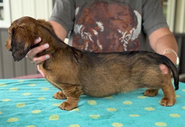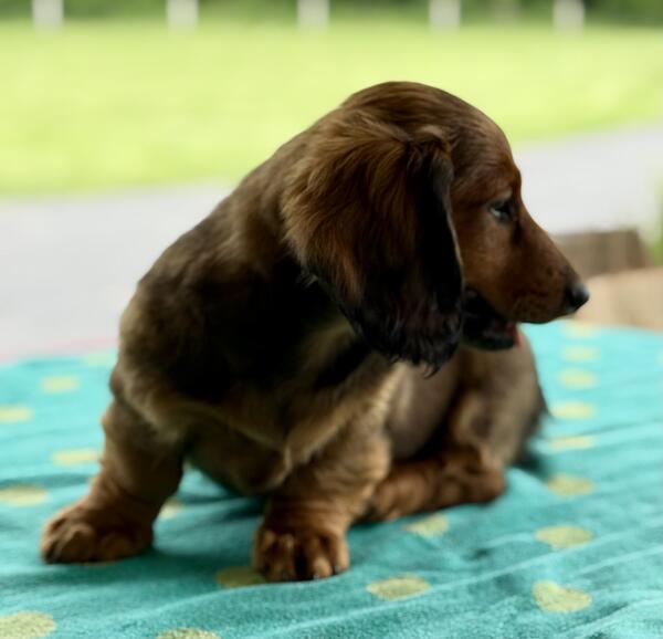 message springbrookfarms about this ad Call me to discuss current pricing on our boy Tagalongs. He is a gorgeous and super sweet Standard. He should mature to 25 or so pounds. He is socialized, loved on, crate training & potty training started, dewormed at 2,4,6 8 weeks and has 2 vet exams and 2 set of shots. Microchipping enrollment with AKC reunite and registration with AKC is included. Check out my website www.atspringbrookfarms.com and my Facebook page Dachshunds at Spring Brook Farms, LLC for more pictures and detailed information. Contact us now to discuss this cutie joining your family. Puppy is ready to join your family now. Dont delay he wont be available for much longer. |