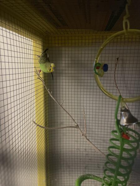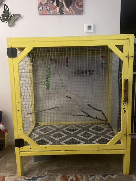 Beautiful handmade birdcage comes with 2 parakeets toys and bowls.