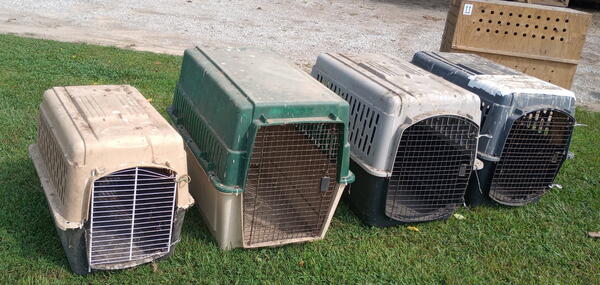 message slprdsg2t about this ad I have 3 large dog crates. 36"long x 24" wide x 38" tall. $30 each. 1 medium dog crate 29" long x 19" wide x 24" tall. $15. Not perfect. Been in the barn too long without using. So time to get rid of them. |