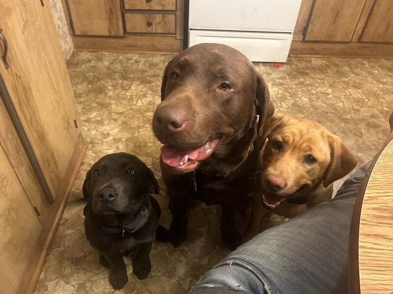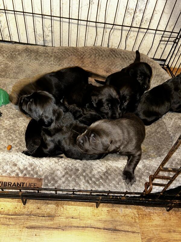 message wslmr134 about this ad I have 2 Male and 1 Female Black labs each. They were Born November 24th and have 2 rounds of shots. They are full blooded, I have also included pictures of previous litter with the same parents. The father is the Chocolate Lab and the mom is the Yellow lab |
