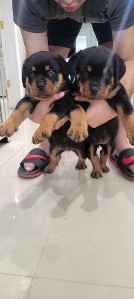 Rottweiler puppies , health certificate, first shots, deworming, tails docked, contact me for more info.Hablo espaol tambin.