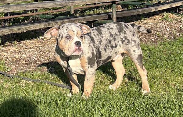 message bncmnkgaz about this ad Mother- Blue Tri pocket bully 14 1/2inches tall, 38lbs Father- Merle Blue Tri French Bulldog 13 1/2inches tall, 19 lbs Merle tri boy white chest -Tri Merle bloodline carrier, 6 months old, 23lb male (Kennel and house trained) $600 obo serious inquires only |