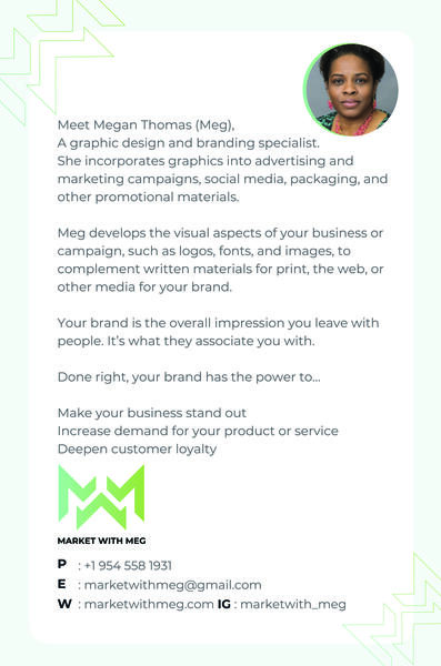 message langley about this ad Elevate Your Brand with a Custom Logo! Are you looking to make a lasting impression? Market With Meg offers professional custom logo design services to help your business stand out. Why Choose Us? - Unique and creative designs - Fast turnaround time - Affordable pricing Contact Us: (954) 558-1931 Email: marketwithmeg@gmail.com Website: Follow us on social media: Facebook: @Dezinah Instagram: @marketwith_meg TikTok: @market_with_meg |