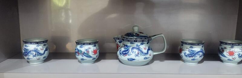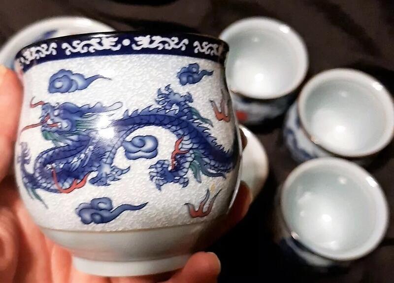 message pigglywiggly64 about this ad This is a Beautiful 5 Piece Oriental Tea Pot Set. This Set Includes Tea Pot with Lid and (4)Tea Cups. The design is of Blue Dragons with Fire Pearls. The cups, Tea Pot & Lid is made out of Porcelain. The tea pots dimensions are approx. 4" tall including the lid x 6.5" long from spout to handle x 3.5" in Diameter. This has a potbelly shape to the teapot and cups. The cups are approx 2.5" in diameter x 2.5" tall and are double walled so the will not get hot. This is a wonderful set for Herbal loose Green Teas. Excellent Condition! Call or Text 786-589-9477 for more information! Este es un hermoso juego de tetera oriental de 5 piezas. Este juego incluye tetera con tapa y (4) tazas de t. El diseo es de Dragones Azules con Perlas de Fuego. Las tazas, la tetera y la tapa estn hechas de porcelana. Las dimensiones de las teteras son de aprox. 4" de alto incluyendo la tapa x 6,5" de largo desde el pico hasta el mango x 3,5" de dimetro. Tiene forma de barriga para la tetera y las tazas. Las tazas tienen aproximadamente 2,5" de dimetro x 2,5" de alto y tienen doble pared para que No se caliente. Este es un maravilloso juego de ts verdes sueltos a base de hierbas! Excelente condicin! message pigglywiggly64 about this ad |