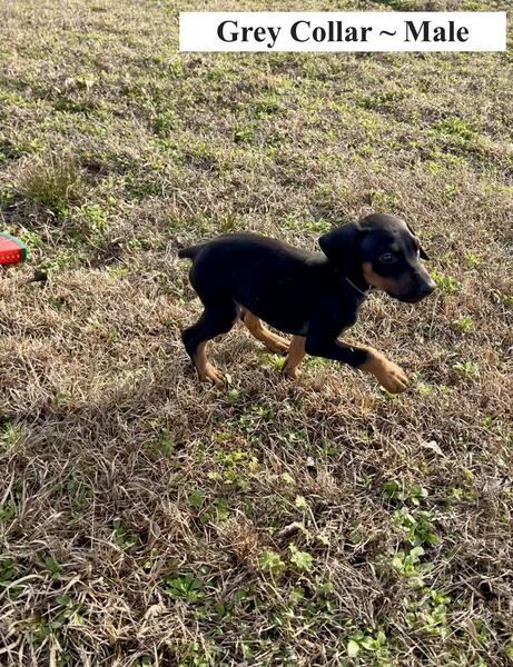 message choppa about this ad Male Black & Rust Born December 28, 2024 Dew Clawed and Tails Docked Deworned biweekly since birth Will have all current shots Well socialized, including nail trimming and inspecting teeth Has began potty training Dam : Blue & Rust, not AKC registered but known pure bloodline Sire : Black & Rust, Large European, AKC registered |