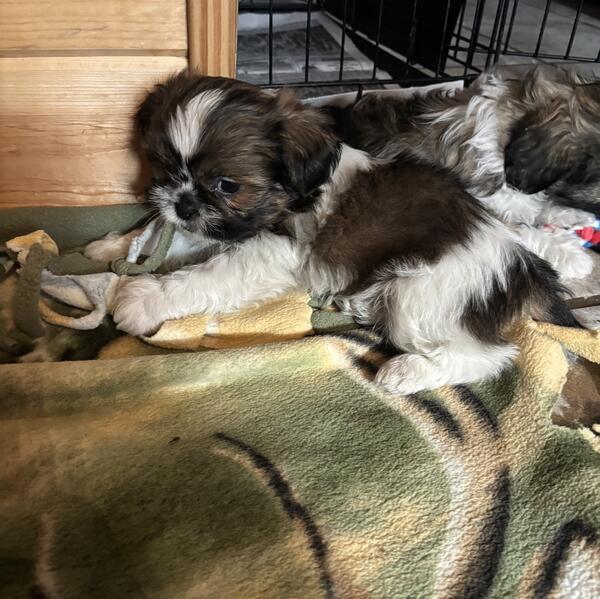 message jshowe04 about this ad I have 2 female and 2 male Shih Tzu puppies available. They are 7 weeks old so will be ready soon. Utd on shots and will be checked by the vet. Call or text 785-364-6007 |