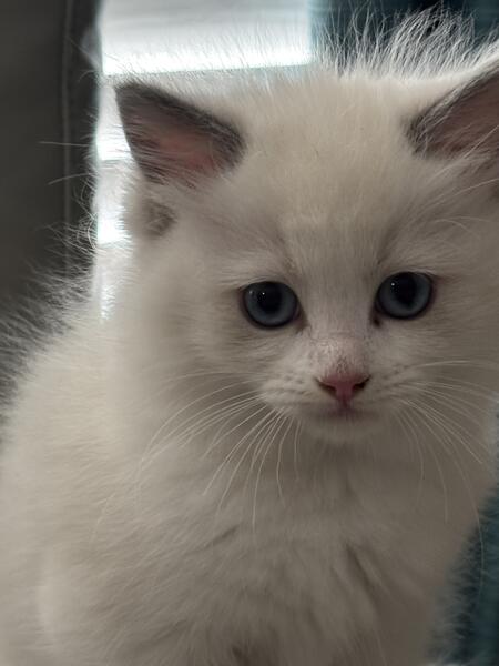 message blakec18 about this ad We have a female Ragdoll kitten for sale. She was born 9/17/25. She is cat box trained and loves to be around people. She is also very playful. Both parents are on site. She has been raised around other cats, dogs, and children. Her price includes being vet checked, dewormed, fecal tested, FIV tested, age appropriate vaccines, and the ability to register her with TICA. |