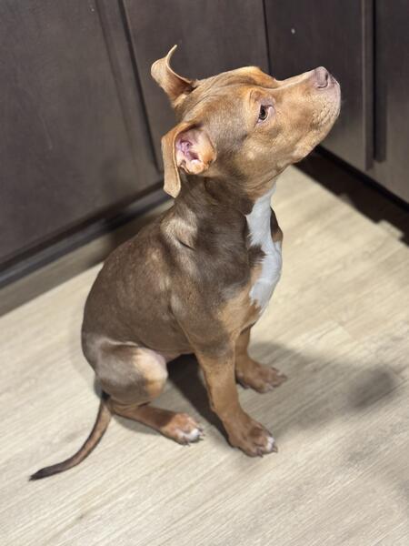 message qdmsg1415 about this ad I have this 5month old chocolate tri female available. We call her foxy. Foxy love walks, children, belly rubs, ear scratches, and to cuddle. Shes very playful. Shes kind of under weight, but I feel its from me having to revive her at birth. Shes looking for a loving home. |