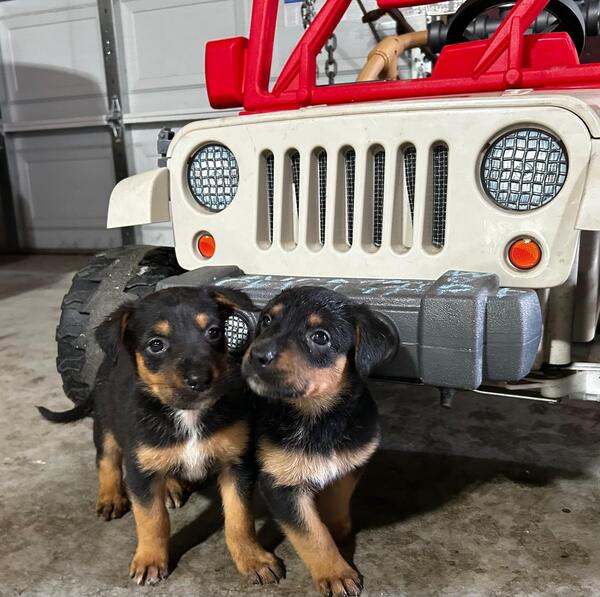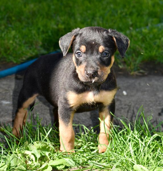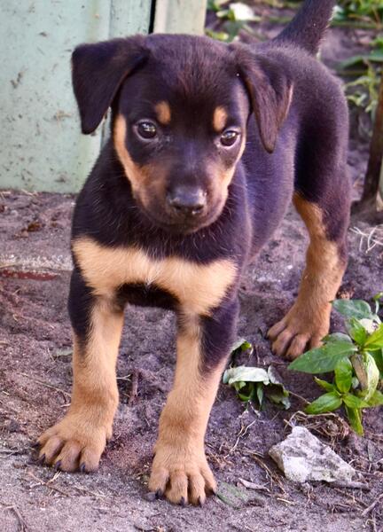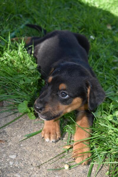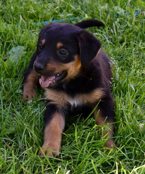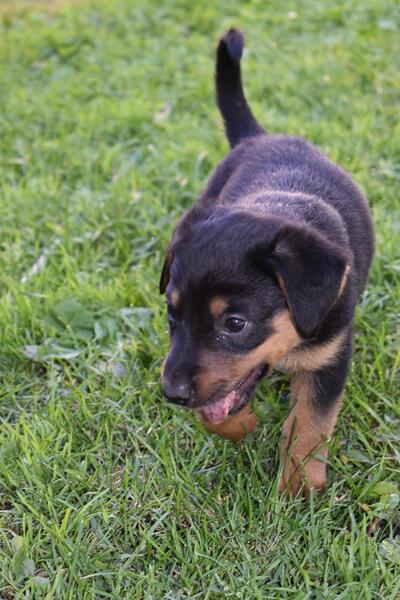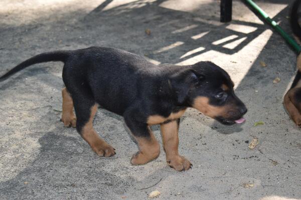 25% German Shepherd 25% Doberman 50% Long-haired Roman Rottweiler