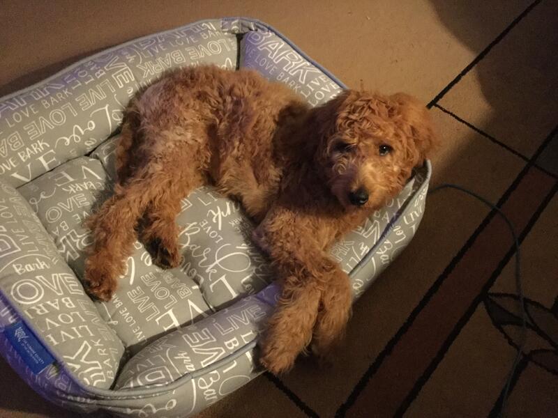 message judyk about this ad Female golden doodle six months old color is red. Shes up-to-date and all her shots including rabies shes chipped she can come, roll over sit shake hands. |