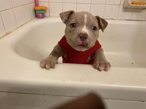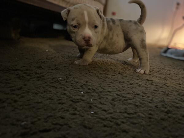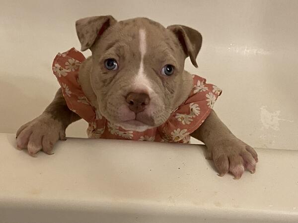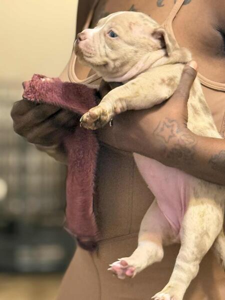 message gatorbloodbullies about this ad Hello this is Cartier shes an American pocket bully She was born April 27, 2025 She is a platinum tri lilac Merle. Her mom is chocolate tril lilac Merle an her dad is Lilac Fawn she will be Abkc register her ears are not docked yet she will be an amazing foundation female if you are interested Message me top half GrandChp 8 ball Louis V muscle tone Bottom half Brimm K3 blood we are located in Romulus mi but can get this amazing girl anywhere from ground shipping too air transportation 313-629-2219 snoop serious inquiries only |