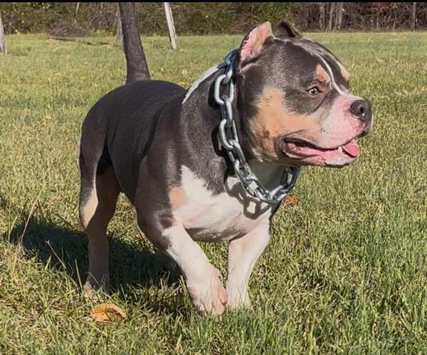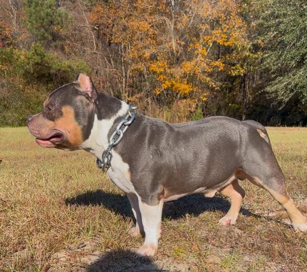 message krstp1043 about this ad American pocket bully Grim grandson Nice block head Thick muscular neck Completly perfect structure wise God did his thang with this one Blue tri Pup back deals available to the right females |