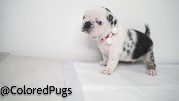 message wldcr5237 about this ad Coca Cola shows white, black and merle. The mother is 3/4 pug and 1/4 french bulldog. The father is pure bred pug. He carries blue, merle, panda, fawn, and black. He can produce a colorful litter if bred to a pure bred pug. This litter was born on 12/1. These photos were taken on 12/29. They are available as of 2/2. |