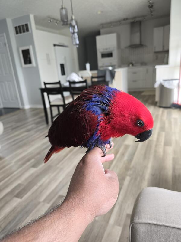 message colorfulcreations1 about this ad 3 years old female eclectus perfect feathers tame healthy and active bird. She never been setup to breed but she has laid eggs multiple time for more information feel free to text or call me at 513-969-9379 Text my phone number for some reason I do not receive any Text on this site |