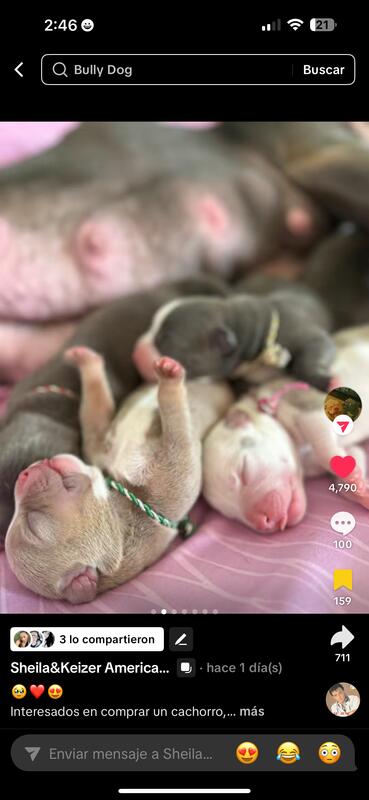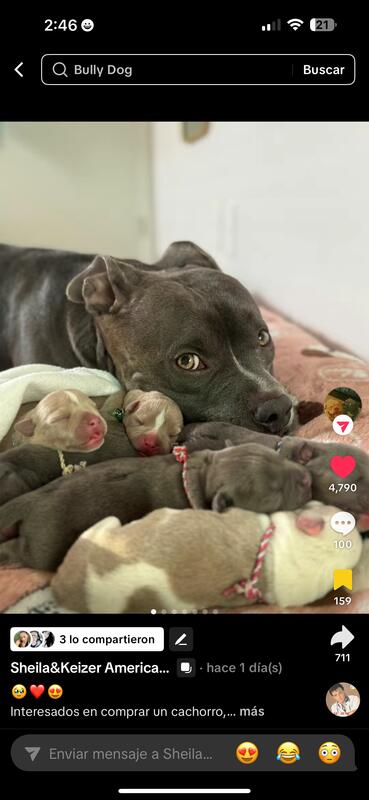 message marce23 about this ad Hermosos cachorros American Bully Pocket de 1 semana de nacidos, listos para crecer en un hogar responsable. Colores: gris con blanco y amarillo con blanco Sexo: machos Vienen con pedigree ABKC Muy sanos, activos y con excelente temperamento Crecen en ambiente familiar, socializados desde pequeos Vacunas y desparasitaciones segn edad (iniciando esquema) Padres a la vista y con excelente estructura |