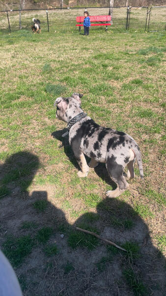 Male. Has paperwork, vaccines, and dewormed. Born January 9th. dad is a Merle micro bully and mom is a tri standard bully.