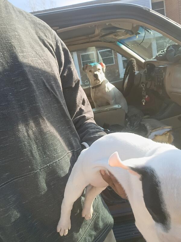 message cmega about this ad These r the best breed I've ever had and the last set I'm having off them easy to train loyal respectful loveable and difently caring and protective 6 weeks old 8M and 1F is the runt that's left she is the black eye one |