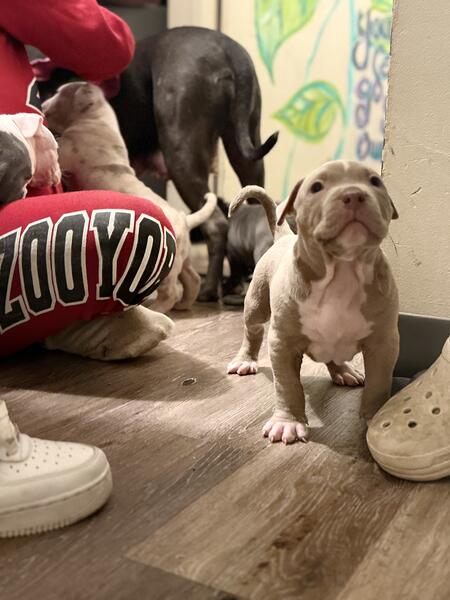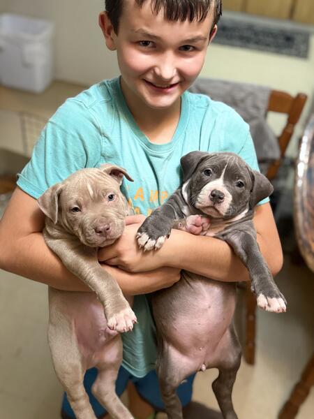 message calicujo about this ad Puppies are 6 weeks old ready to go to their forever home in 2 weeks 6132859341 for quick response 1 female (blue & white) 2 males one is tan brown and the other is a grey brown with white marking |
