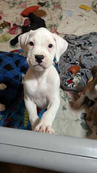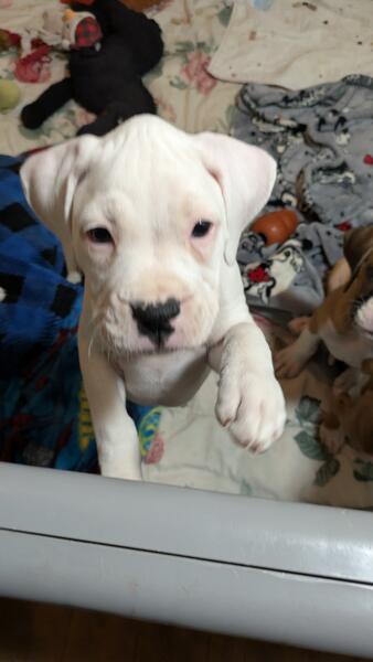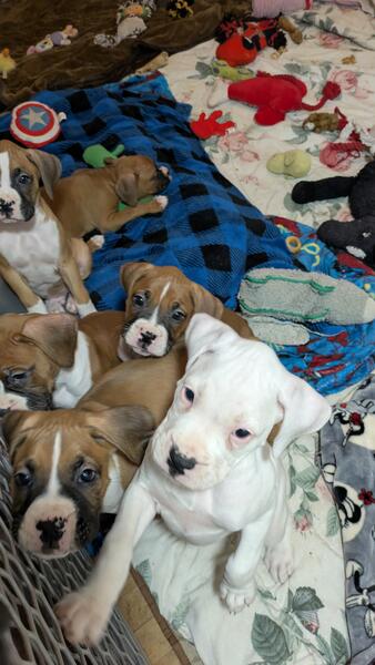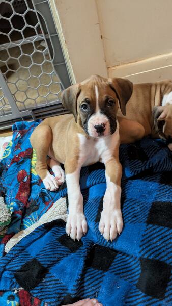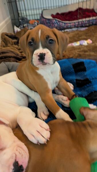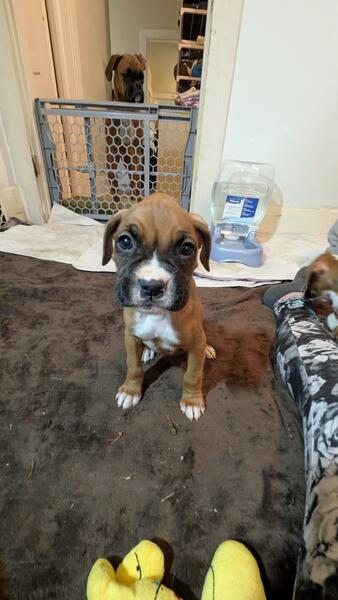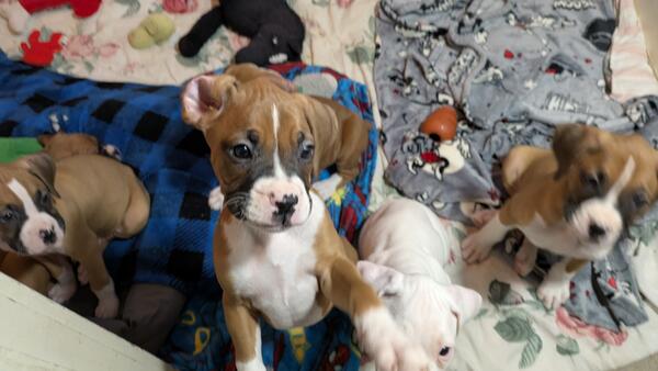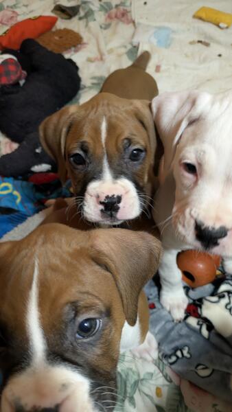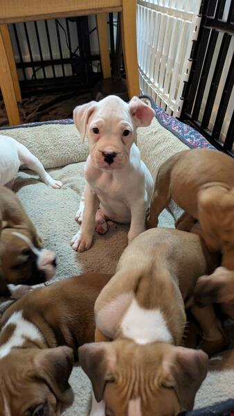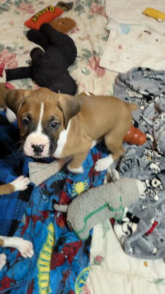 message eevolutionboxers about this ad Contact information: (Melissa) AKC Champion Bloodline Boxer Puppies. Born May 12, 2025 and will be ready July 14, 2025. We are located in Saginaw, MI. 1 Male (Flashy fawn) available 2 Female (Flashy fawn) available 1 white Female available Price is 2500.00. A 300.00 non-refundable deposit is required to hold puppy of your choice. Once deposit is placed, I remove his/her listings as available. Any photos I post will say, Reserved We are on AKC, AKC Marketplace, Tiktok and YouTube. We have over 8 years of experience and references. Puppies have champion bloodlines as we strive for excellence in genetics, however raised as family pets first. We are a private breeder, indoors and hands on. We do not do "kennels " or multiple litters on grande scale. We have 3 litters per year. 1 per female, per year. We abide by AKC guidelines. Our puppies will be up to date on both vaccinations and deworming. We do microchip our puppies. We acclimate them to potty pads starting the potty training process, same with crate training. We send you home food, treats, collar and leash, blanket with litter scent, toys, potty pads and bags, and whatever else I find to buy. You will get a folder. It will contain AKC Application, 3 Generations lineage, Vaccination record and Microchip Information. We honor the life time health guarantee of 8 years. A boxers lifespan is 8 - 12 years. Photos andor Videos are sent to you every 2 weeks, sometimes more often. We want this to be a wonderful experience! Please Call/Text/Email us with any questions you may have. Thank you, Danny & Melissa Eevolution Boxers message eevolutionboxers about this ad |