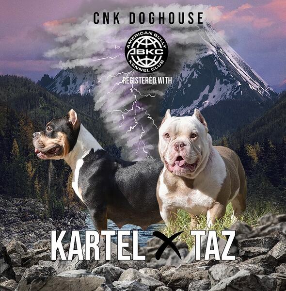 message cnkdoghouse about this ad Merle (female) and Tri (male) dog is moms parents White dog with brown markings is dads dad Dogs will be registered with ABKC and ready to go home October 22 Text 754-725-1703 for more info or follow @cnkdoghouse |