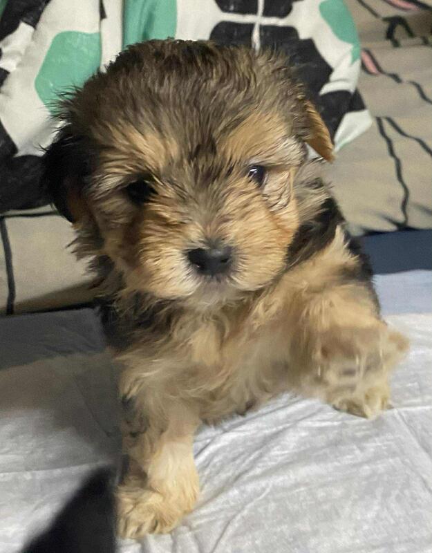 Male yorki puppy up to date pad trained super smart an very small text if interested 740-299-1434
