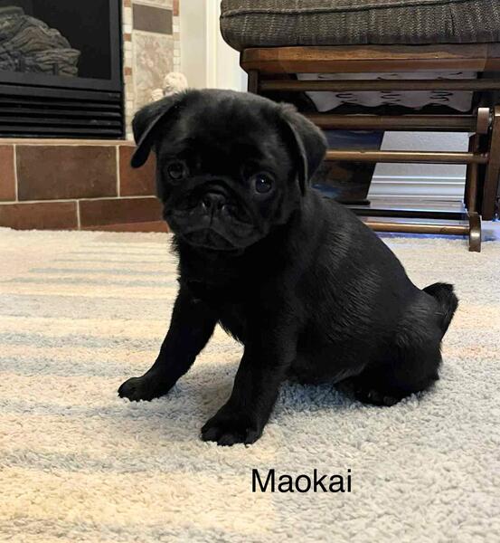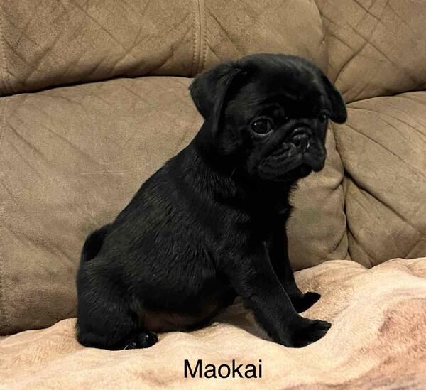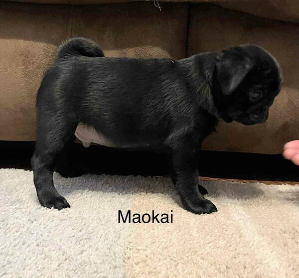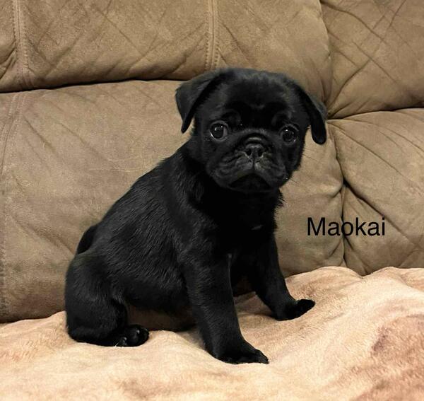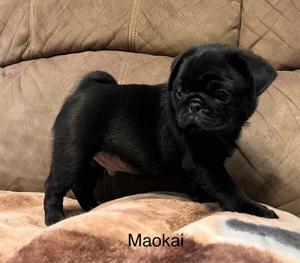 message eggemeyerj about this ad AKC Maokai is a very handsome black male pug puppy. He is an absolute doll baby, with a sweet, sweet personality to go with his adorable looks. Maokai is an outstanding representation of his breed, and has a super fun, loving personality. He loves play time, but he also loves his humans snuggles and attention. Maokai's parents are both tested for PDE and both are PDE negative, thus he will be N/N or negative for PDE, too. Maokai has been vet checked and cleared by my vet. Maokai is just getting started on house breaking, and is also still using a disposable potty pad in a tray, when he can't go outside. Maokai has had two vaccinations for parvo, including one being a 5-way, at this time. Also, he has current wormings, and preventatives for Giardia or Coccidia. You could drive to our area, and I would meet you at the Jasper exit, Love's Travel Plaza, or my son does do deliveries for $1 a mile, one direction, up to 450 miles. Anything over that, he gets $100 motel fee, to cover his night staying in a motel, as over 900 miles in one day, is just too many miles to do in one day. Adam also does fly the puppies to you, with added ticket prices for himself and the puppy, plus a nanny fee(this must be paid ahead, on the flight tickets Nanny fee can be paid at meet up or delivery. Maokai comes with a health certificate or clear vet check(depending on if flying or you need the health certificate his AKC litter registration(limited as a pet baby, unless further discussed with full AKC his shot/worming record booklet, puppy kit, with toys, blanket, chew, etc. Please feel free to ask for more pictures or a video, if you are seriously interested. Thanks for viewing this oh so handsome, adorable little boy. Deposit is $300, and he is ready to leave now, or I can hold an additional 7 days, with a deposit, if necessary. message eggemeyerj about this ad |