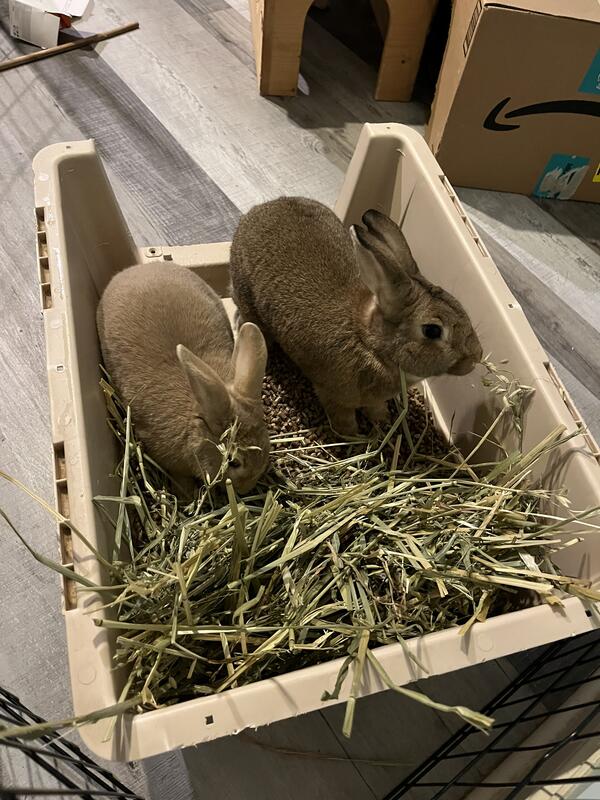 message xc10klc about this ad If you already have everything and just want the bunnies make me an offer! These 2 sweet bunnies are bonded brothers and are about 1 1/2 years old. Please do not let their boring brown colors deter you! They are so friendly and curious always hoping for a treat! They love to be pet, and are getting used to being held. With someone who can spend more time with them I know they would love being held. They are good with young kids and have never bit anyone. They love to eat carrots and lettuce right out of your hand. They are 100% litter trained for both pee and poo which makes them so clean and easy to care for! The wood pellets we put in the litter box absorb all of the odor. We keep them in our living room and there is zero smell. They stay happily inside of their 8x8 included pen. You can let them roam your house under a watchful eye. Having 2 bunnies is always better than one because they keep each other company and stay out of mischief. Everything you need is included! We have just decided to let these guys go to a home that can give them more attention. Bunnies: $50 2 4x4 pens: one is 30 tall, one is 24 tall and they connect: $50 Oxbow Food 25# bag new: $20 2 new 40# bags of Wood pellets for litter box: $15 2 Wooden Castles: $25 Soft sided Cat house: Free Hay: free Vitamins: free Litter box: free The litter box is actually the bottom to their carrier, so top of the carrier is included for free. TOTAL: $160 PRICE NEGOTIABLE (I just want them to go to a good home Please make me an offer, I will not refuse anything reasonable Anyone who has read this far. I have had this post up for a couple weeks and gotten over 2000 views. PLEASE tell me why no one is interested? Is it their colors? The cost? I am truly curious so I can adjust something if needed. Thank you if you message me with your thoughts and advice message xc10klc about this ad |