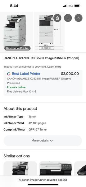 Canon image runner in perfect condition almost like brand new connects to WiFi and prints color $500