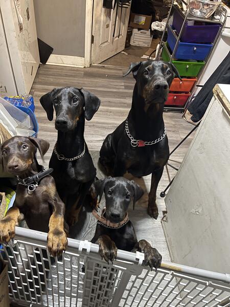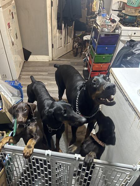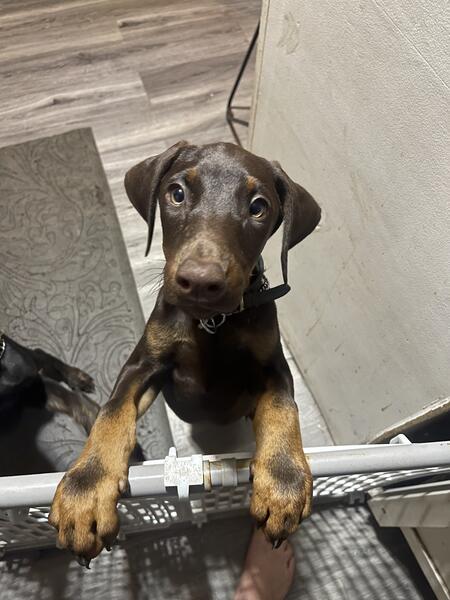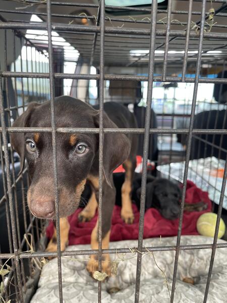 message weselmania about this ad I have 2 Doberman Pincher puppies a red male and classic black and rust female,tails docked ears are up to you,first shots that protect against 6 diseases Canine Distemper, Canine Adenovirus Types 1 and 2 (Hepatitis/Adenovirus Canine Parainfluenza, Canine Parvovirus, and Canine Coronavirus,beautiful playful affectionate puppies,if youre not familiar Dobermans are intelligent easily trainable,with confidence and consistency,they are a very demanding breed that will need a lot of attention and time, |