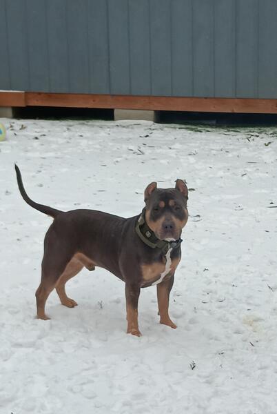 message gcbkennel about this ad Roscoe is a 2yr old XL American Bully Blue Chocolate Tri and a Tri carrier. He is Bossy and Mugglestone bloodline from Rez_reppin_kennels. He is dual registered at UKC and ABKC and embarked tested. His COI is 17% and cleared from all health problems that effect the breed. Booked for May 2024 contact us at Instagram- green_coast_bullies greencoastbullies.com |