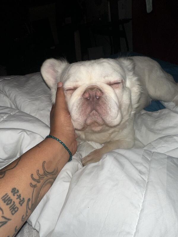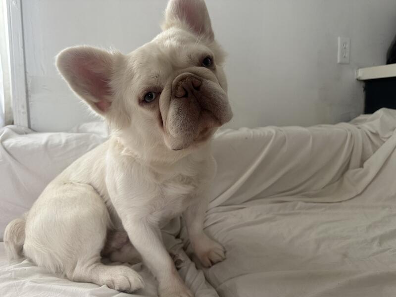 Hes a platinum lilac and tan Merle fluffy with 2 copies of intensity.