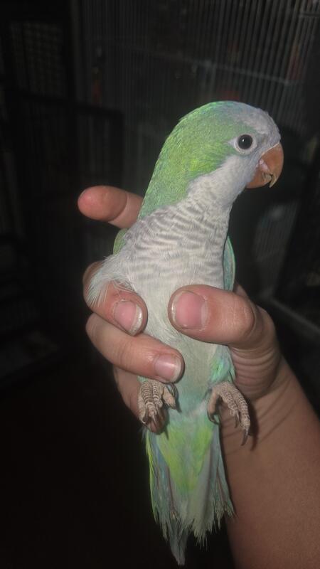 Quaker and cage. Handfed hatched 2025 located in lynchburg va text 706-567-2581
