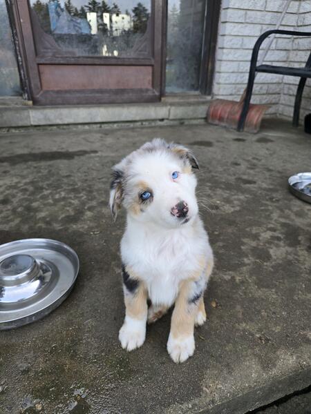 message safehavenaussies about this ad 2 pups left ready to go this Thursday 11/21 at 8 weeks! Tails docked, standard size (38-50lbs full grown first vaccines given, dewormed, started on crate and potty training, well socialized with kids, cats, dogs, and chickens. Blue Merle Male and Red Tri-color female |